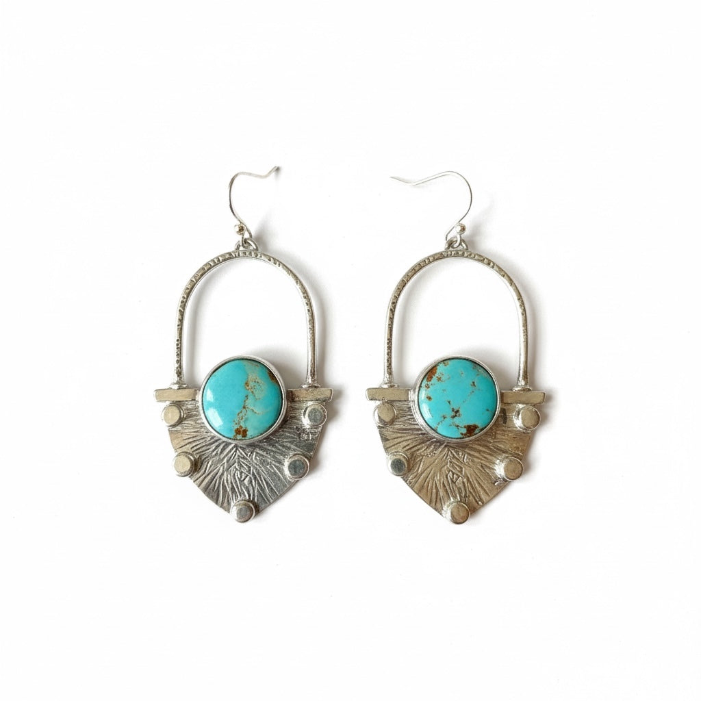All natural Turquoise and Textured Sterling Earring. Earrings are actually a bit smaller than shown on model